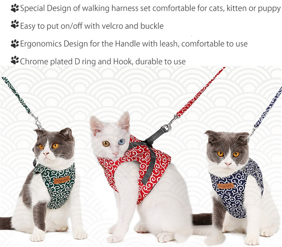 - The Japanese style is leisure and lovely. It can be fashionable clothes for cats while it can be also a harness and leash set as long as using the D buckle.