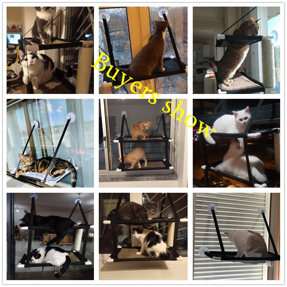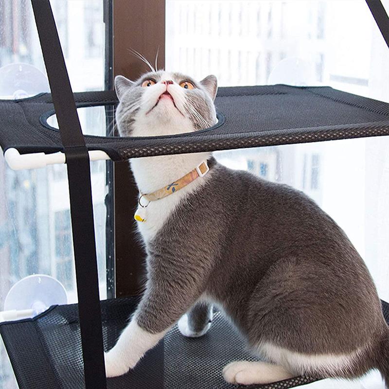This Waterproof Fabric Cat Hammock Bed is a chic and functional way to give your cat a place to sleep outside of your home. This bed is easy to clean and designed to withstand the elements. The cat hole can be used for cats from top to bottom to accommodate two adult cats.